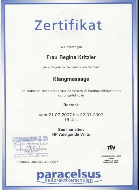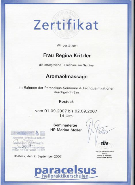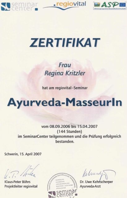 Regina Kritzler (Ayurveda-Masseurin, Diplom-Pharmazieingenieurin) Clara-Zetkin-Straße 8 17109 Hansestadt Demmin